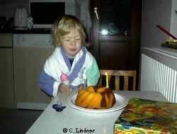 | Der 26.09.2002 um 6:30 Uhr. Mama hat mich wach gemacht. Was ist bloß los heute??? Ich habe doch noch nicht ausgeschlafen. Oh ein Kuchen mit Kerzen, ist der für mich?? Gleich mal die Dinger auspusten bevor Wachs drauftropft. Was sind denn das für Päckchen?? Auch für mich. Ach so ich habe Geburtstag. |