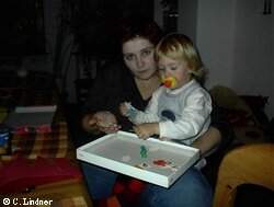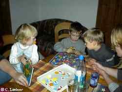 | Hier spielen Konstantin, Iris und Max ein Würfelspiel. Bei diesem Spiel hat Max gewonnen. Und mich lassen die nicht mitspielen. | |
